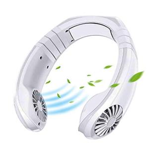 こちらは、首にかけることによってハンズフリーを可能にした携帯扇風機です。